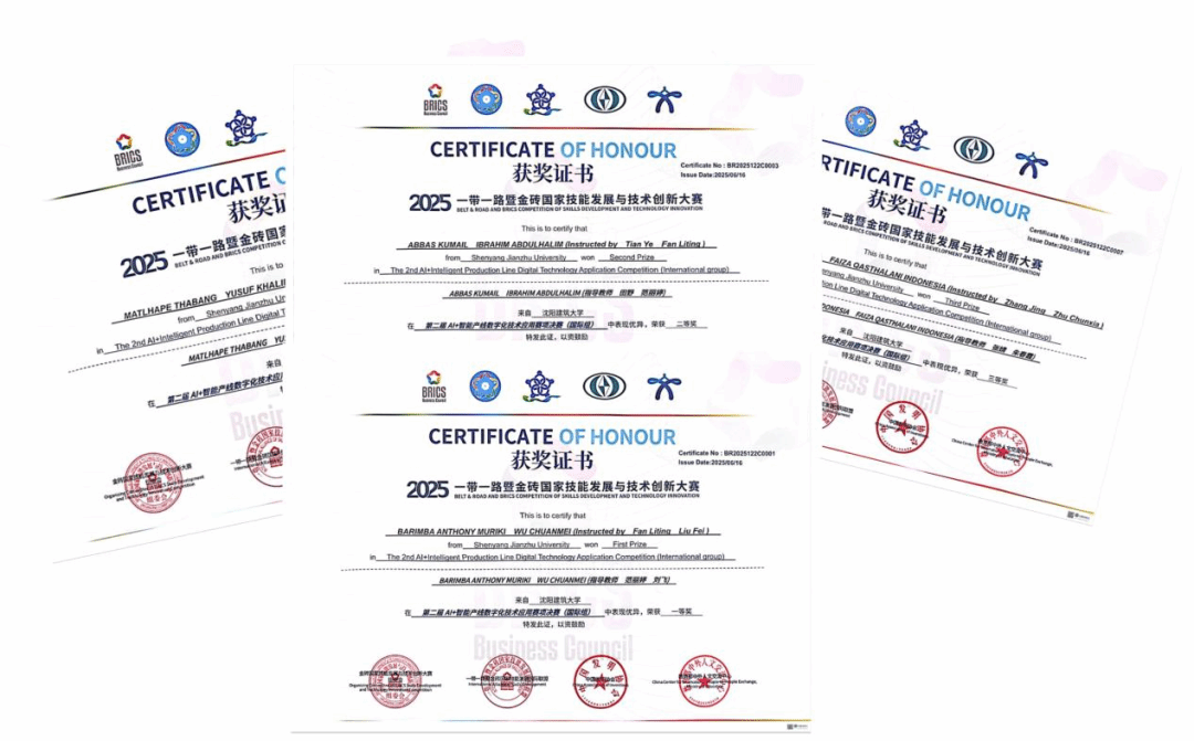6月16日,2025第九届“一带一路”暨金砖国家技能发展与技术创新大赛之第二届AI+智能产线数字化技术应用赛项决赛在吉林省辽源市落幕。由我校国际学院14名留学生组成的7支代表队勇创历史最佳战绩,荣获国际组一等奖1项、二等奖1项、三等奖2项,同时荣获“优秀组织奖”“最佳组织奖”两项团体荣誉,三名教师荣获“优秀指导教师奖”,彰显了我校在国际化技术技能人才培养上的突出成果。