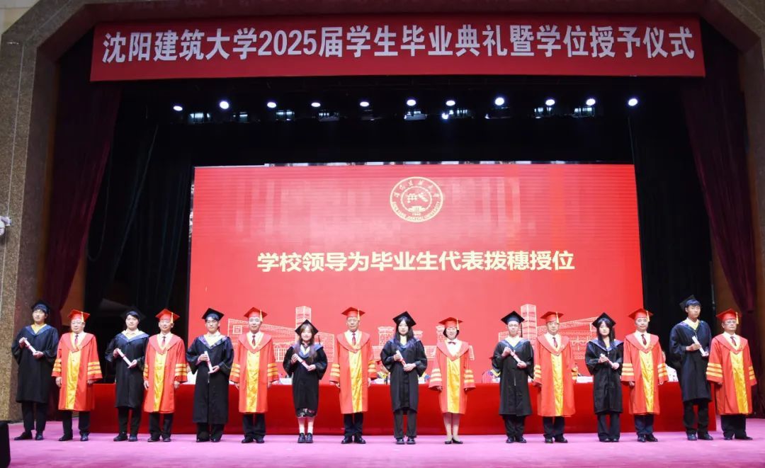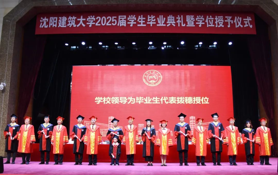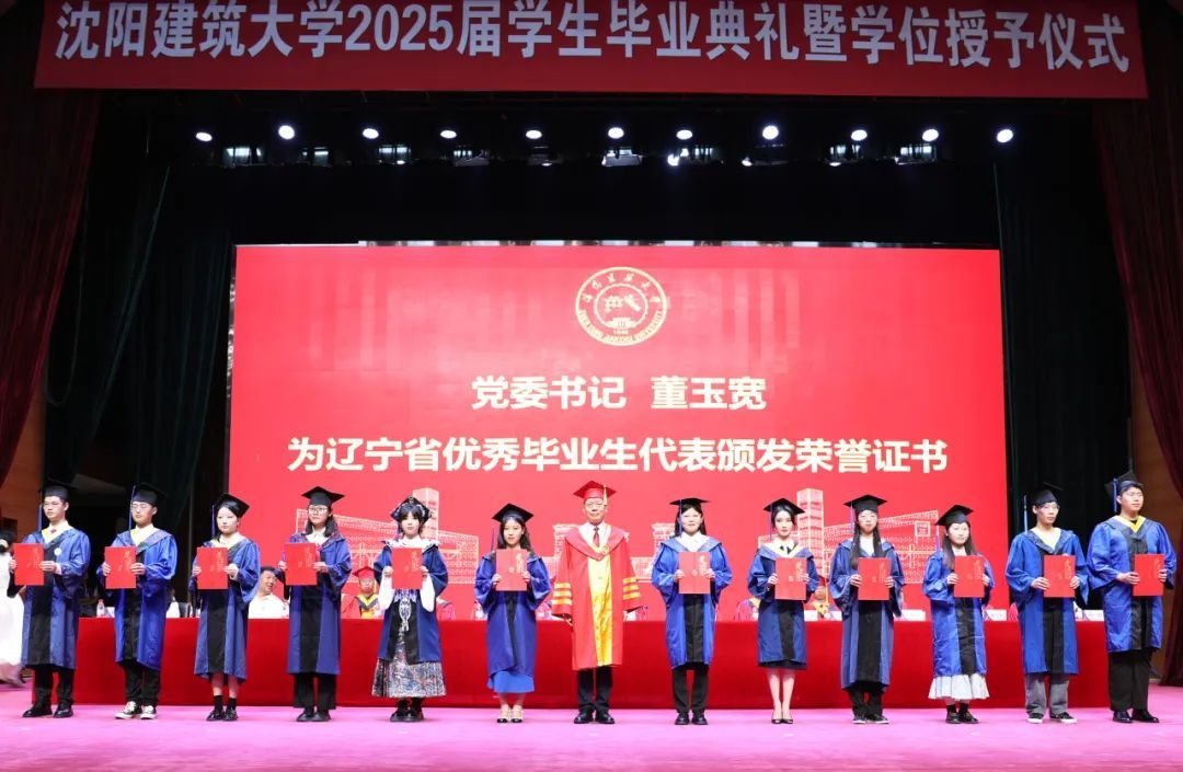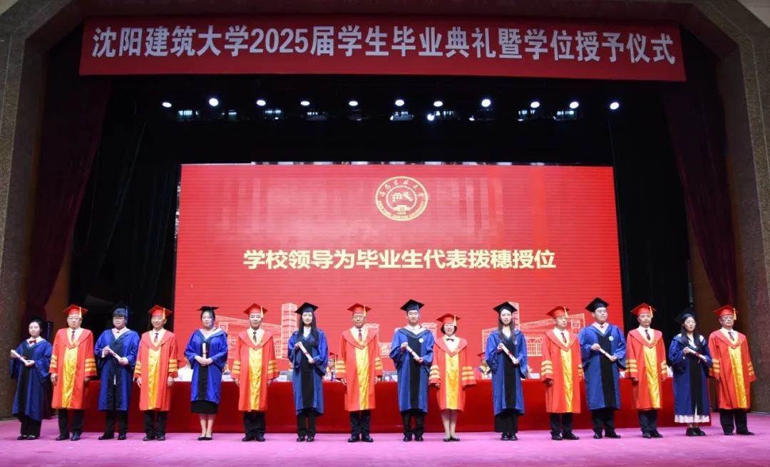 与会校领导为毕业生代表拨穗授位。党委常委、副校长栾方军宣布2025届学生获评辽宁省优秀毕业生荣誉称号情况。