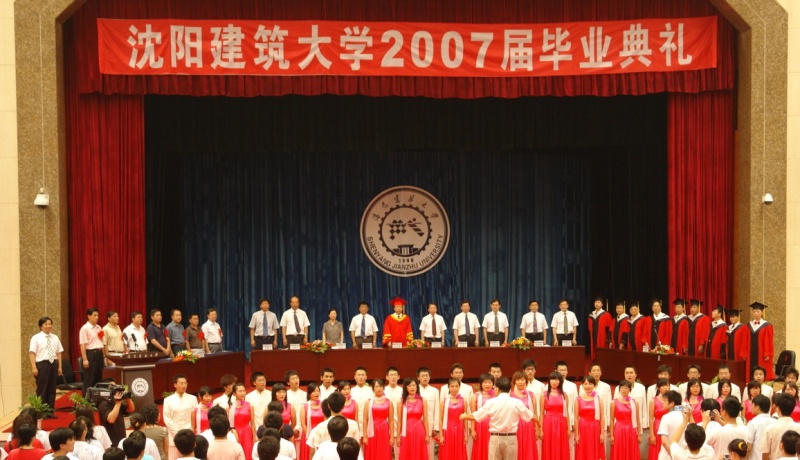 7月6日上午,沈阳建筑大学2007届毕业典礼在文体中心隆重举行。3000余名学子迎来了学有所成的光荣时刻,他们在这里挥手告别美好的大学生活,即将奔赴新的工作和学习岗位,开始崭新的人生征程。