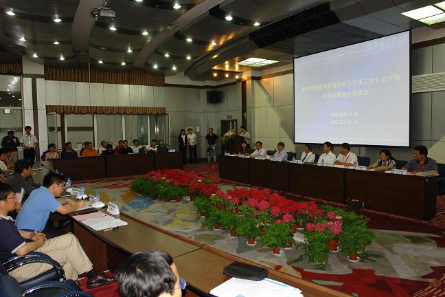 6月1日,我校在办公楼301会议室召开了全国高等教育建筑环境与设备工程专业评估专家视察意见反馈会。评估专家组组长、重庆大学城市建设学院副院长傅祥钊教授,专家组成员天津大学环境学院院长助理安大伟教授、山东建筑大学热能工程学院院长李永安教授、中元国际工程公司总工程师李著萱教授级高工、哈尔滨工业大学市政环境学院副院长姚杨教授、中国建筑设计研究院总工程师潘云刚教授级高工,建设部人事培训处处长何志方,我校党委书记张福昌、副书记王军、副校长刘军、李成滨、校长助理石铁矛及环境学院领导、教师代表、学生代表、职能部门领导出席了会议。刘军主持了大会。